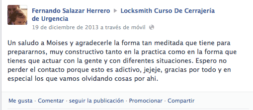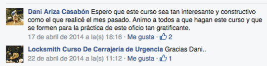 Comentarios en Facebook dejados por algunos de nuestros alumnos