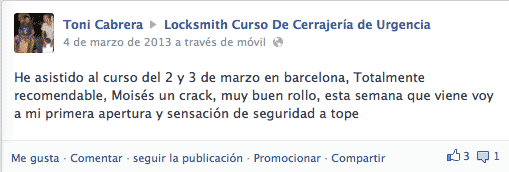 Agunos de nuestros alumnos han colgado sus impresiones en Facebook. Creemos que nuestro sistema progresivo de aprendizaje funciona satisfactoriamente...